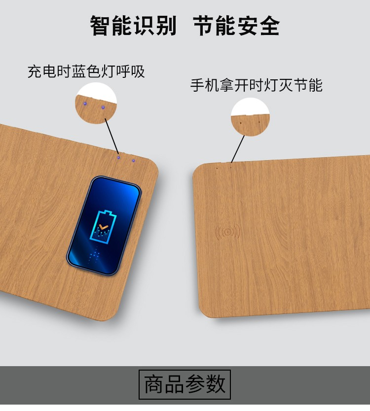 木紋款無(wú)線(xiàn)充鼠標(biāo)墊,手機(jī)一放,立即充電,表面PU,表面細(xì)膩、平整、操作穩(wěn)定,底部淺絨,防滑穩(wěn)固