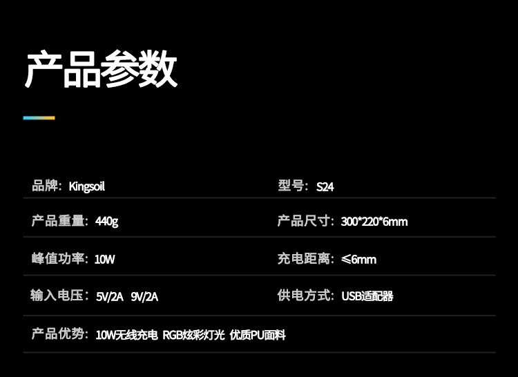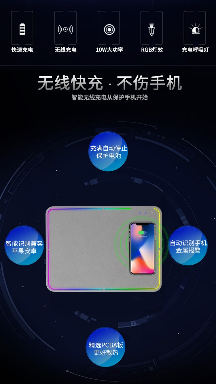 方形發(fā)光無(wú)線充鼠標(biāo)墊