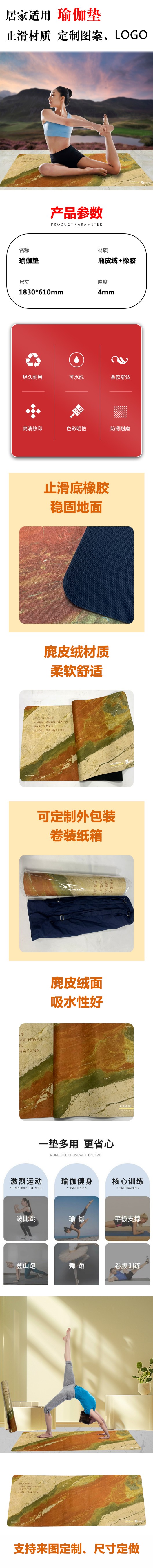 工廠直銷麂皮絨瑜伽墊天然橡膠超薄鋪巾防滑便攜戶外墊子女生墊子