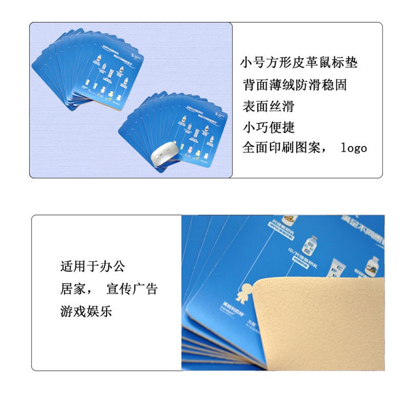 工廠批發(fā)PU皮革款小號(hào)方形鼠標(biāo)墊防污鼠標(biāo)墊印刷圖案logo量大優(yōu)惠