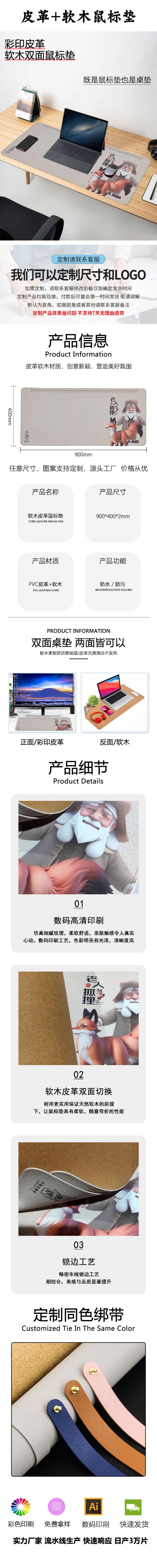 定制軟木+皮革鼠標(biāo)墊廣告電競游戲墊辦公寫字桌墊杯墊地墊來圖定制