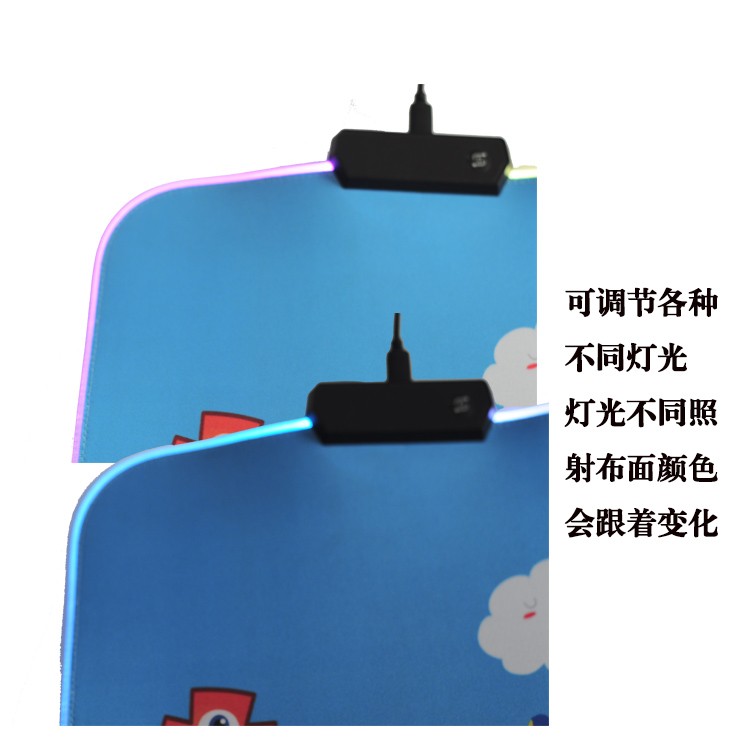 鼠標(biāo)墊的四周便亮起RGB七彩燈光,顏值瞬間拉滿。通過頂部的燈效切換按鍵,還能調(diào)節(jié)多種燈效,既有固定的,也有動態(tài)的,除了七彩燈效,也能設(shè)置自己喜歡的單色。